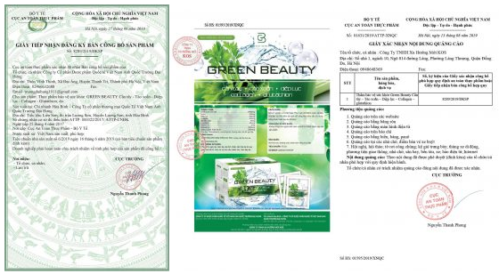 Hình ảnh: Giấy chứng nhận công bố sản phẩm GREEN BEAUTY