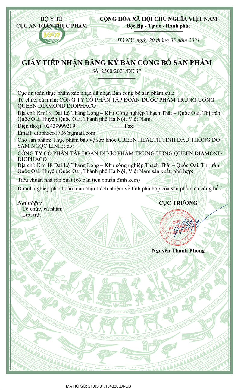 Hình ảnh: Giấy chứng nhận công bố sản phẩm Green Health